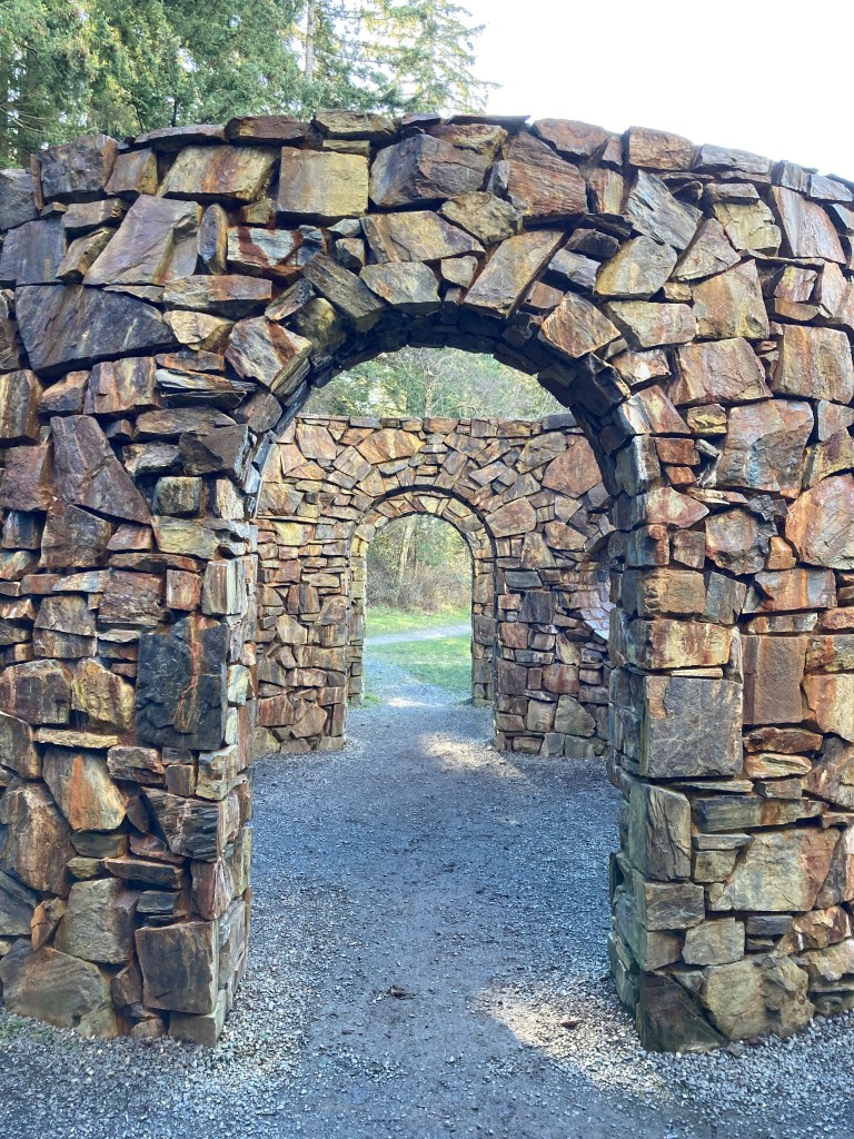 Designed by Nancy Holt and built by Al Poynter from 1977-1978, this beautiful piece of architecture sits on the Western Washington University campus with the arches aligned to the North Star. The sculpture is 10′ high with an outer ring diameter of 40′ and an inner ring of 20′. Made of rock, or Brown Mountain Stone, from the side of Red Mountain (Lillooet Mountain Range). The structure bears the resemblance and mystery of Stonehenge, allowing the viewer to feel wonder and a connection with the natural world. Holt states of her work, “even when we think in celestial terms, there is still indefiniteness.”