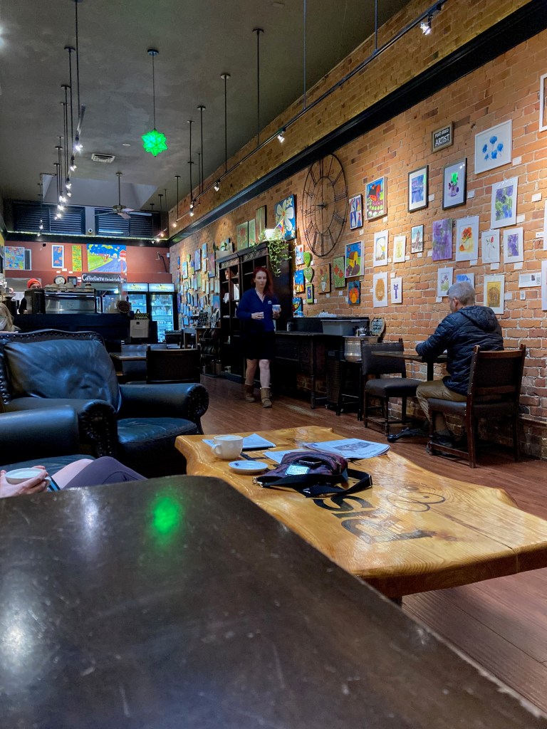 From here, and before anything could take place, we had to get coffee. So we headed to Ristretto Coffee Lounge & Wine Bar. It’s a quaint coffee shop that offers coffee, tea, local baked goods, lunch or dinner. Along the walls many local artists are on display, pieces you can either briefly admire or take home with you to create your own art space. Recommended as one of the best coffeehouses in Mt. Vernon you can’t go wrong whatever you try!