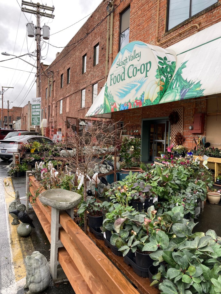 Next we headed downtown, noticing all the murals and fun window displays dotting the way. We made a stop at the Skagit Valley Food Co-op. While it was packed inside it was also quite cozy and fun hanging out with the locals. We bought and ate the most delicious honey caramels we’ve ever had! And as their mission states, when you shop at the Co-op you support our vibrant community, sustainable farming, and your own health. So, to health, and all those good things!