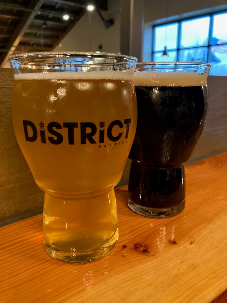 Getting kind of hungry again (as we seem to) we decided to stop at District Brewing for an early dinner. We ordered meatless wings and the Tombstone pizza in addition to drinks; a Narrows Passion Fruit Sour and the District Black Lager. Everything was as tasty as could be and we had good seating too, upstairs with a view of the window as well as the main room.
