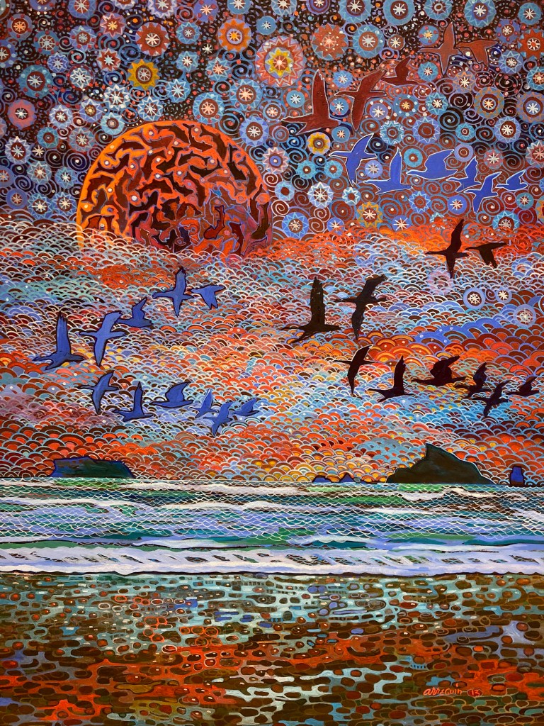 Showcasing the work of Mexican American artist Alfredo Arreguin, Whatcom Museum in Bellingham presents El Velo Exquisito, or The Exquisite Veil. A six month long exhibit (January 25th – July 6th, 2025) featuring 13 oil paintings that explore many scenes from nature and execute his signature technique of overlaying images with lace-like patterns. His love of colour, pattern, and the natural world is overwhelmingly present in each of his pieces. Arreguin passed away in 2023 and donated 6 of his works to the Whatcom Museum’s permanent collection. These as well as paintings on loan from his estate and also private collections are what you will see at this show. Check it out and immerse yourself in his vibrant world.